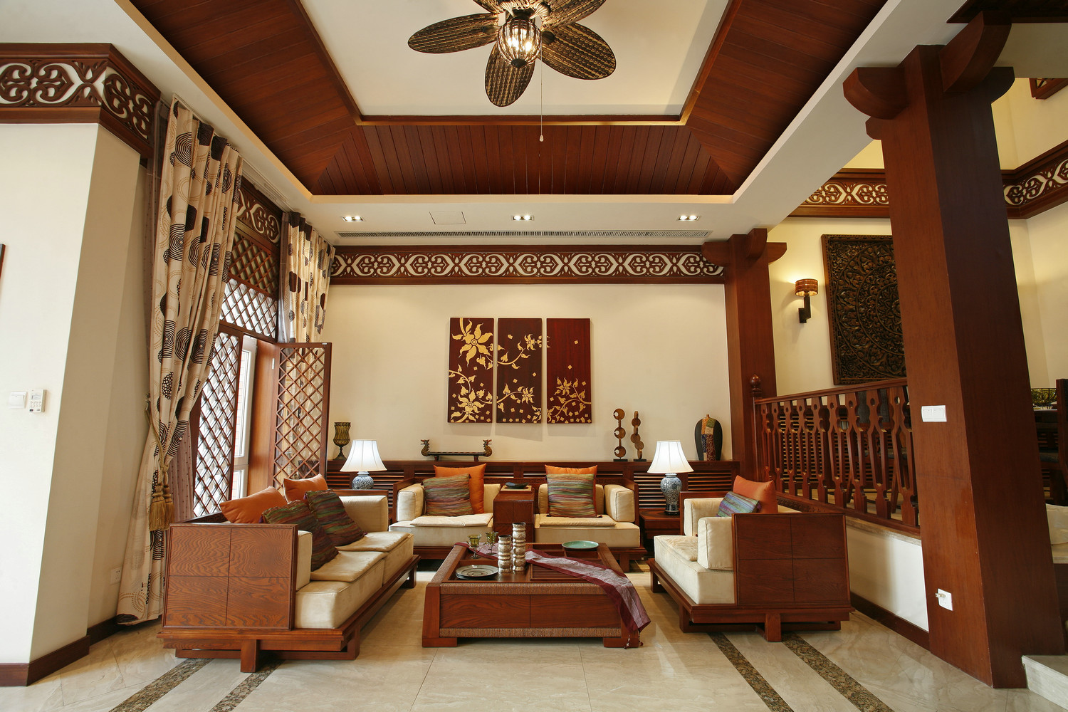 玄關設計與房子風格一致。玄關是進門必經過的地方,要根據房子的整體布 局來設計玄關,讓人一眼望過去就是很協調的,可以和房子融為一體,而不是突兀 的設計一個玄關。吊燈與地面搭配一致。玄關一般會選擇吊燈,在玄關吊頂設計要考慮到和地 面搭配,對于兩者之間位置、顏色上面要相互照應,進一步提升房子格調,在吊頂 造型設計上,可以考慮交圈設計,美觀而且具有獨立感。