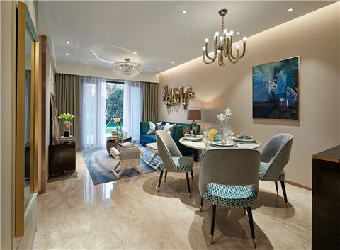 4、分隔式電視機的背景墻,現(xiàn)在大多數(shù)客食是一體式的,沈陽綠港裝飾設計師認為這兩個空間可以展開一半的分隔,然后在分隔上展開電視機的背景墻的設計,這可以放電視機,可以區(qū)分空間