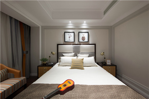 1 .進行室內設計時,各空間都有設計的側重點。 臥室的設計方面重點是床,空間的裝修風格、布局、色彩、裝飾都要以床為中心展開。